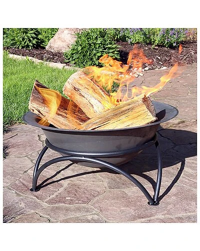 - This sleek cast iron fire pit bowl and stand set will add instant warmth and contemporary elegance to any outdoor space, including the backyard, campsite, or cabin. The fire pit bowl comes complete with a stand so it is raised above the ground. The 24-inch size ensures the fire will be warm enough for family and friends to gather around. No assembly required. Simply place the bowl on the stand when ready to use the fire pit.