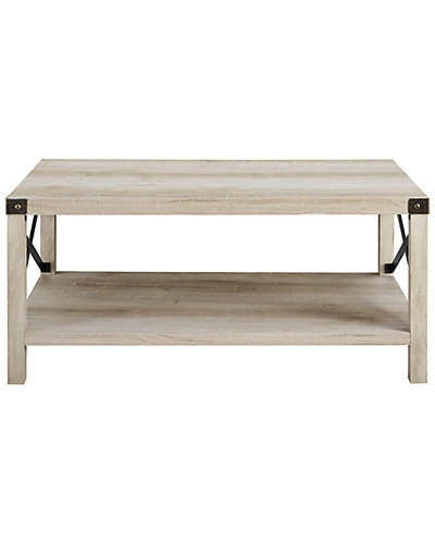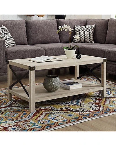 - Design details: Give your living room some rustic style with our industrial inspired coffee table. Black painted metal accents are featured on the top corners and x-shaped sides, which contrast beautifully with the wood textured surface made from durable laminate. Our coffee table provides just enough space for placing down items from your TV remote to your mail, while also having a shelf underneath for simple storage or decor.