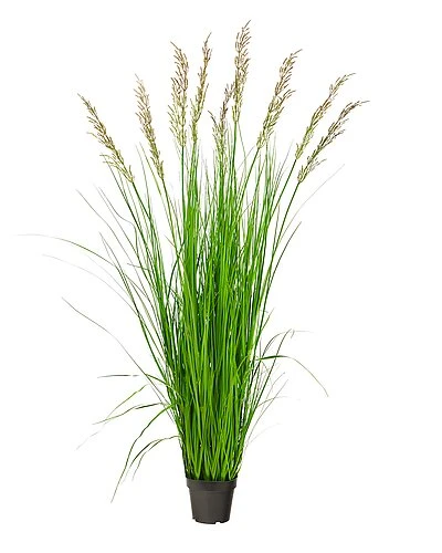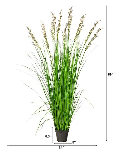 - Design details: enhance your space without the worry of upkeep with this plume artificial grass plant. Different sized grass blades form a fountain of green foliage that brings symmetry and lines to spaces in need of depth. To soften the look, yellowish textured plumes add a simple yet elegant touch. Standing 5.5ft from a nursery planter (included in height), curate in small spaces that need more life. Perfect for awkward corners, apartments, bathrooms, bedrooms, or foyers.