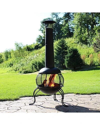 - Bring culture and warmth to the patio or backyard with this outdoor wood-burning chiminea fire pit by Sunnydaze Decor. First utilized 400 years ago in Spain and Mexico, chimineas were a staple to every home. They were used for cooking, baking and heating. This chiminea features a durable steel construction with a high-temperature black paint finish so it is sure to last through many seasons.