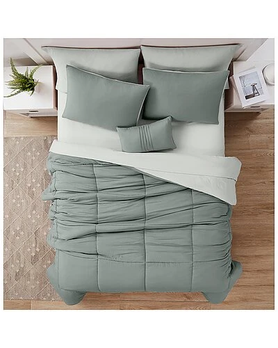 - Design details: washed soft microfiber cover, reversible comforter. twin- comforter- 66×86, sham- 20×26, flat- 66×96, fitted- 39×75, pillowcase- 20×30, deco pillow- 12×18. full- comforter- 76×86, sham- 20×26, flat- 80×96, fitted- 54×75, pillowcase- 20×30, deco pillow- 12×18. queen- comforter- 86×86, sham- 20×26, flat- 90×102, fitted- 60×80, pillowcase- 20×30, deco pillow- 12×18. king- comforter- 102×86, sham- 20×36, flat- 106×102, fitted- 78×80, pillowcase- 20×40, deco pillow- 12×18. cal. king- comforter- 102×86, sham- 20×36, flat- 106×102, fitted- 72×84, pillowcase- 20×40, deco pillow- 12×18. 200 gsm bonded filling. deco pillow fill: 100% polyester. comforter fill: 100% polyester