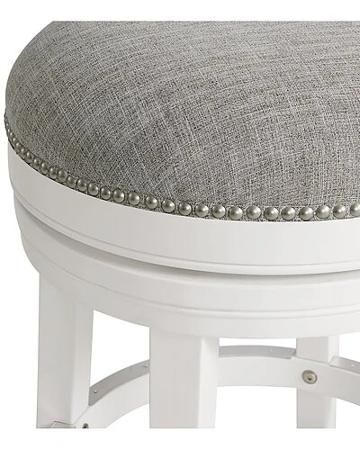 - Simple yet full of style these counter height stools will be the perfect accent to your home. The stools are the perfect addition to your bar, kitchen island or bistro table. They feature a backless design, a built-in footrest, 360-degree swivel range, and nail head trim. Exquisitely crafted from rubberwood and linen like upholstery. These stools feature legs that are flared for stability and a metal-plated footrest for durability. Easily tuck in these backless stools to keep your look clean.