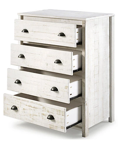 - Rustic-style for your child’s room, guest room or any smaller bedroom space. Offered in rustic grey or rustic white this well-made Brazilian Pine furniture sets the tone for your farmhouse or shabby chic style..4-Drawer chest offers plenty of storage room.Metal Drawer Glides.Meets anti-tipping standards; anti-tipping strap kit included.Rustic painted finish creates the perfect accent for your space…Products meet all CPSC and ASTM standards….