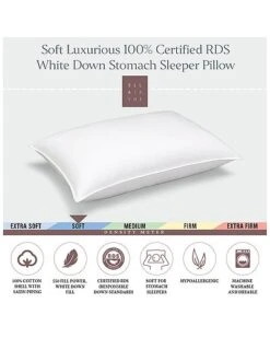 Down Supply Soft Luxurious White Goose Down Stomach Sleeper Pillow Home
