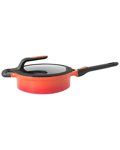 - Design details: Give your sauces a chance to shine with this non-stick saute pan. The aluminum reacts quickly to temperature changes, from the heat you need to saute your meat or poultry to the gentle simmer for your pan sauce. Use it on any stovetop, put it in the oven or take it directly to the table with the easily detachable handle. Special pouring spouts align with holes on the lid to easily strain excess liquids.