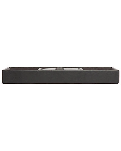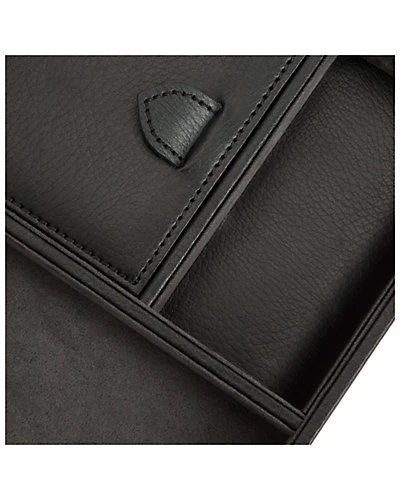 - Design details: Stylish and classic, Blake is brought to life with top grain leathers, chrome and bold accents. This sleek black leather Blake valet tray effortlessly organizes your electronics, money, jewelry, keys, and more. Includes grey ultrasuede lining and 4 storage compartments; Storage: 4 storage compartments (1 with lid)