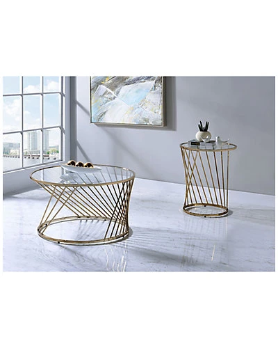 - Combining sturdy metal frame and a tempered glass top, this Bluelipe occasional set offers a unique style. Its twisted base creates dimensional interest from every angle and adds a touch of vivacity to the atmosphere while the beautiful glass top provides the perfect size for snacks and beverages. Sleek and stunning, this occasional set will be the perfect set to bring function and modern artistry to your house.