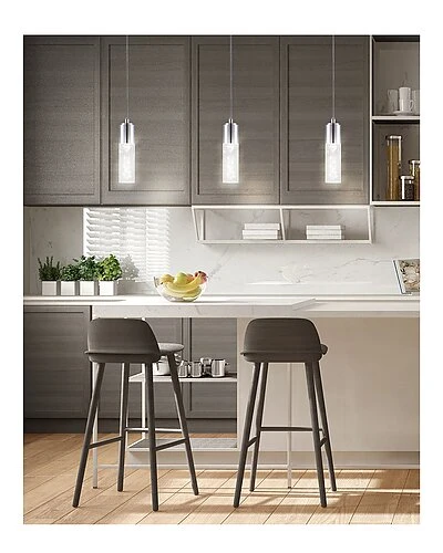 - Design details: This small contemporary pendant light dresses up your kitchen with sparkling chrome and acrylic. Cascading bubbles give the acrylic cylinder shade a hint of glamor. Hang two or three in a row over a kitchen island; use several over a long serving bar, or create drama by mixing different heights over a dining table. These adjustable pendants are the ideal accent for a modern, glam interior.
