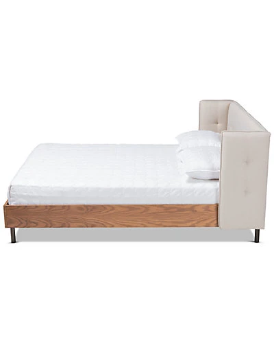 - Design details: The classic wingback headboard is tailored to mid-century perfection in the Catarina bed. Built with a sturdy wood frame, the Catarina features a low platform finished in a warm walnut brown and set on top of black metal legs. The headboard is upholstered in a soft, foam filled fabric that provides ample comfort for you to rest against. A single row of button tufting adds a chic look. The Catarina bed is made in Malaysia and requires assembly.