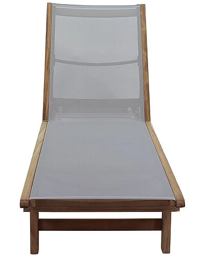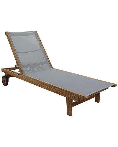 - The Deck Side Natural teak outdoor sling chaise lounge brings Venicerary style to the great outdoors. With it’s sleek design and natural teak wood patina this piece will be the talk of your next pool party! Made from Grade A, FSC certified teak wood, you know you’re purchasing a high quality, environmentally friendly product. Great for any outdoor setting: patio, covered patio, deck, fire pit, outdoor kitchen, poolside, lanai, gazebo, etc. Textiline fabric used for sling. Beautiful golden teak will maintain its color if teak oil is applied once a year. For a more patina look, just let the wood age and turn silver. The sling is made from Sunproof Textiline. Very easy to clean and comes with a 1 Year Limited Manufacturer’s Warranty.
