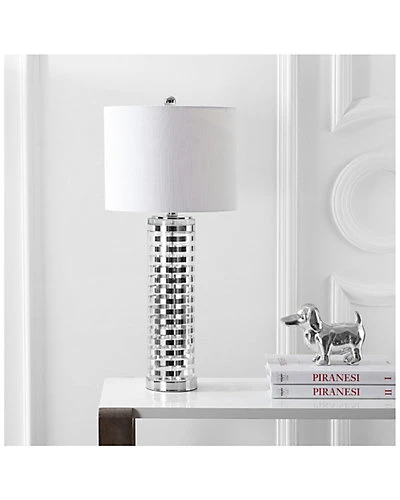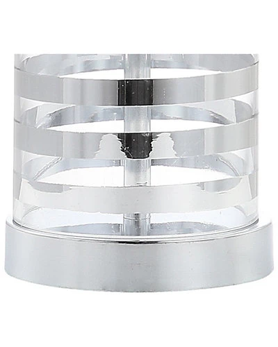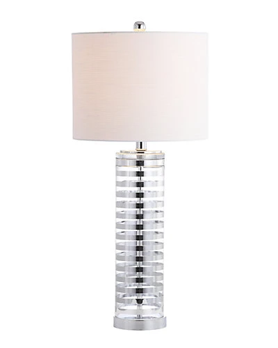 - Design details: chrome glass base; white linen shade; requires 1 LED bulb; bulbs included
