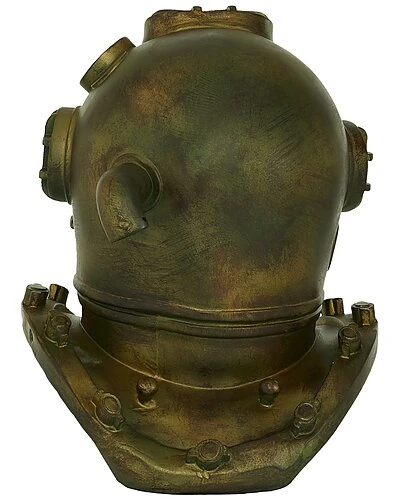 - A coastal inspired space is built around the idea of a laid-back, carefree vibe. Round coastal style diving helmet is made from polystone materials. Vintage table decor carries antique bronze finish with light patina throughout. Antique gold decorative table sculpture features a realistic rendition of a vintage diving helmet with curved base. Item measures 13″L X 14″W X 16″H; weight: 8.33 lbs