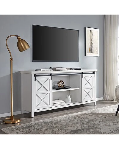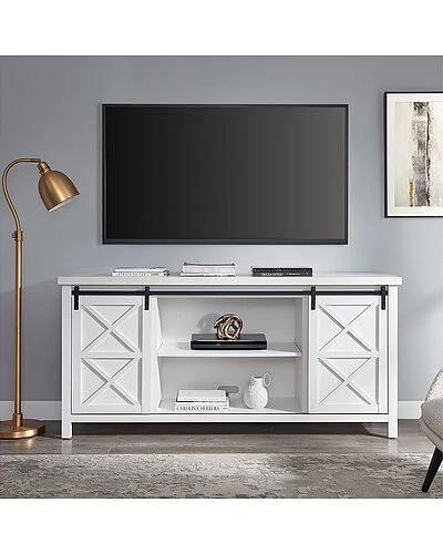 - Combine functionality and on-trend design with this sturdy TV stand. Its rich wood tone creates a warm neutral palette that will blend seamlessly into any color scheme, while its functional sliding barn doors add a touch of modern farmhouse whimsy. A must-have for living areas and entertainment spaces, this TV stand sets the stage for the big game, a movie marathon, or that season finale everyones been talking about.