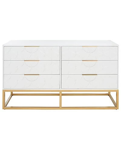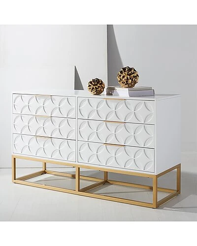 - A must-have for todayÕs glamorous penthouse-chic interiors, this Emelia Dresser is a total knockout. EmeliaÕs carved guilloche pattern streams over six spacious drawers in a clean white finish, creating a captivating display in any room, while its sleek gold bar pulls and open gold base take Emelia to new heights of style.