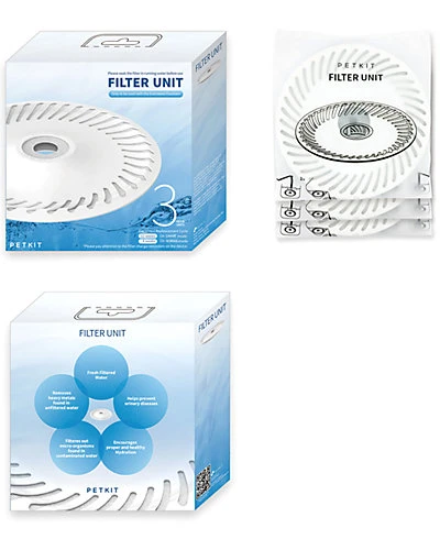 - The 3 piece PETKIT Eversweet Carbon Replacement Filtration unit comes in a narrow rounded design and filters out and helps completely eliminate or screen any and all harmful chemicals and impurities found in contaminated or unfiltered water. Internally each filter features mesh screens with activated carbon and Ion-Exchange Resins. To only be used with the PETKIT Eversweet device. Includes 3 replacement filters.