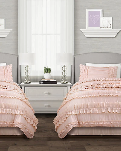 - 96in x 92in comforter, two 20in x 26in shams, and 80in x 60in bed skirt with 14.5in drop