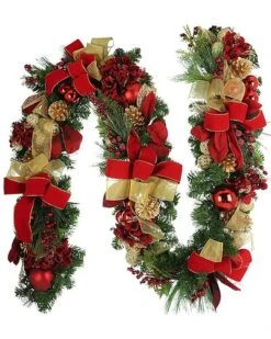 9Ft Holiday Garland With Red Hydrangeas, Ornaments, And Bows Home