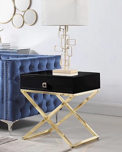 - Design details: MDF and stainless steel construction; high gloss lacquer, single drawer with self-closing mechanism