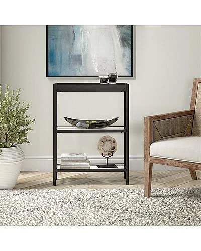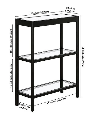 - Clean, minimalist lines and sturdy tempered glass make this console table the perfect addition to your living room, bedroom or entryway. Proudly display knick-knacks, magazines and more on the tempered glass top and lower shelves. The streamlined look and neutral metallic finish pairs seamlessly with your existing color scheme and decor style, while its modest dimensions create extra storage in the smallest spaces.