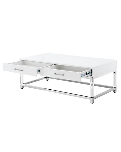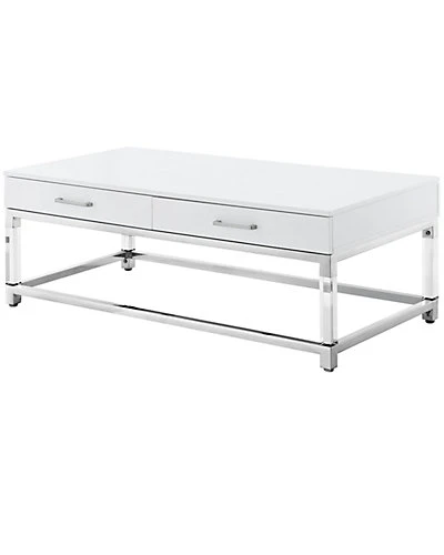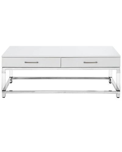 - Design details: The unusual design of this coffee table makes it a striking addition to any space, creating shimmering and lustrous appeal. Crafted from durable eco-friendly MDF with in a sleek high gloss finish, acrylic legs, stainless steel metal frame with matching handles, this elegant 2 drawer piece is an excellent solution for the modern home. Ample 2 drawer storage is perfect for organizing.
