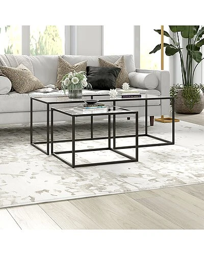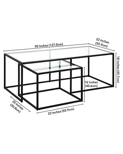 - This nested coffee table set is the definition of modern elegance. With sleek metal frames and glass tops, these tables add a new element of design to your home, serving as the perfect place for your decorative items. Their compact design allows these tables to be nestled together for a combined look, or separated to display your matching table set throughout your living room, den, or office.