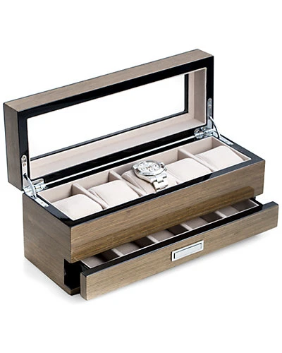 - Design details: includes a five compartment accessory drawer and chrome accents.