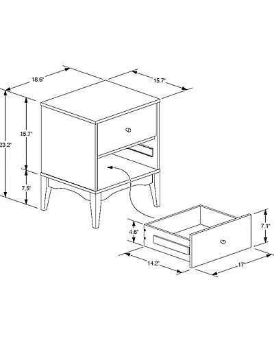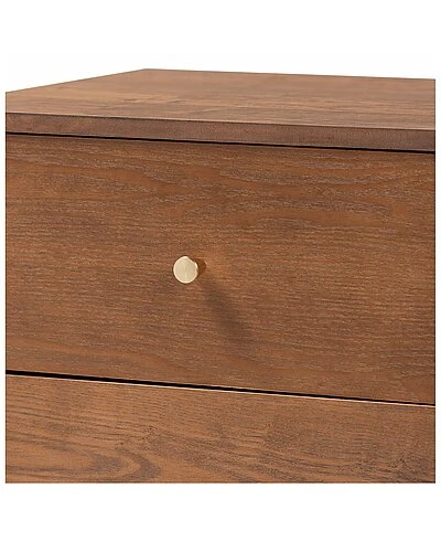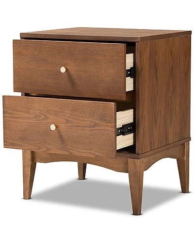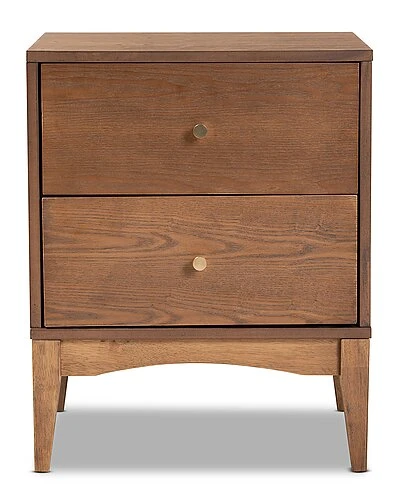 - Configure your bedroom to fit your needs with the stunning utility and style of the Landis nightstand. Made in Malaysia, this nightstand is constructed from sturdy wood displaying a natural ash walnut finish. Two drawers accommodate your nightly routine with plenty of space for bedside essentials. Requiring assembly, the Landis features gold-tone metal drawer knobs for a subtle touch of glamour. Elevating the function of any bedroom space, the Landis nightstand brings classic convenience to the modern home. Overall Dimensions: 23.20in High x 18.60in Wide x 15.70in Deep; Drawer Dimensions: 15.40in Wide x 13.60in Depth x 4.60in High; Legs: 7.50in High;