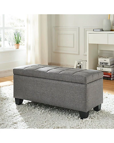 - Design details: This ottoman is the definition of style meeting sensibility. Perfect as a means of seating for guests, youll also discover that theres ample storage space located underneath the plush top cushion. And realizing that no matter how audacious one may be, safety always comes first, so extra measures have been built in to prevent accidental slamming of the lid. This is not a furnishing that will allow itself to be hidden from view; this is a front-and-centre piece that is as functional as it is fabulous!