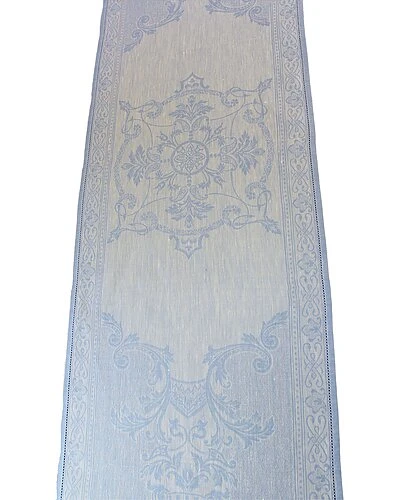 - Enhance your dining room decor with French Homes luxurious 20 x 68 Astra 100% woven linen table runners made in Portugal. The clean and graceful lines of the Astra table runner give way to an enchanting renaissance fairytale design in dreamy and romantic shades of ivory and pale blue that are showcased spectacularly by the woven jacquard fabric and is the ideal finishing touch to a beautiful table setting. When taken care of properly, these high-quality linen table runners can provide a lifetime of use. Steaming or ironing is required for peak smoothness and crispness after cleaning, in your washing machine or professionally.