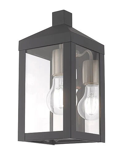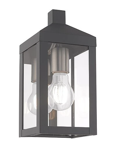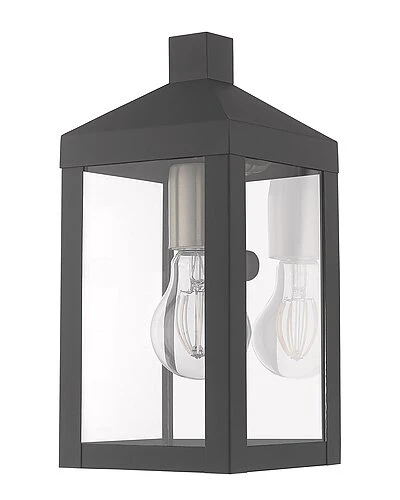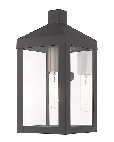 - Design details: The dramatically simple shape and bold lines help define the Nyack wall lantern. Featured in a Scandinavian gray finish with panels of clear glass.
