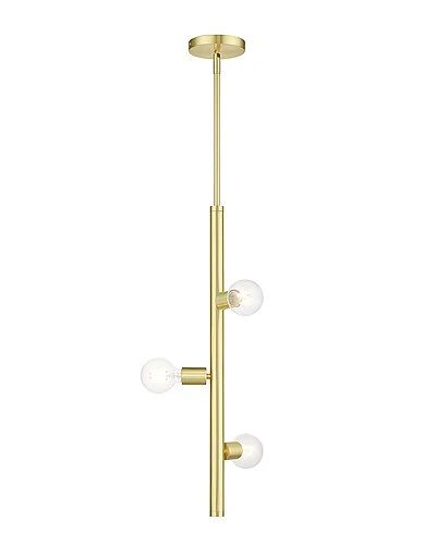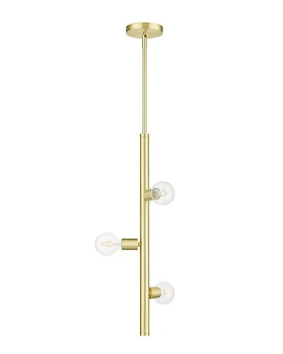 - Design details: Simplicity and attention to detail are the key elements of the Bannister collection. The dimensional form, exposed bulbs and combination of finishes adds a playful mood to a contemporary or urban interior. This three-light asymmetrical pendant design gives a new face to a kitchen, bedroom or a bathroom vanity. It is shown in a satin brass finish.