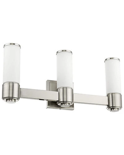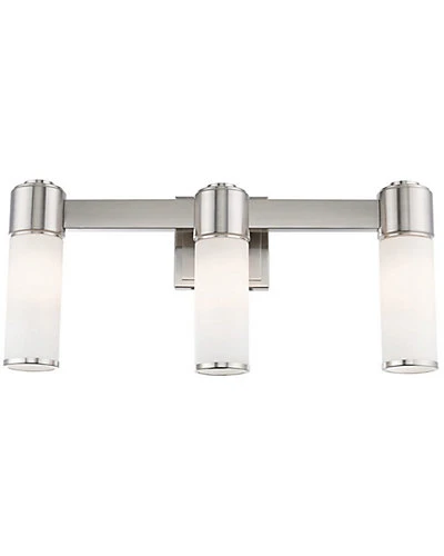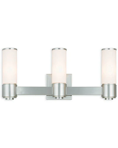 - This stunning design features a brushed nickel finish studded with hand blown satin opal white glass. This sleek design will brighten up bathroom. Pair it with the mini chandelier to give your bath that extra wow factor!