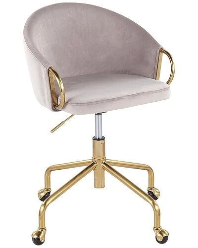 - Chic modern style shines bright with the unique design of the Claire Task Chair by LumiSource. The Claire features a low rounded backrest, sleek gold armrests, and a gold metal 4-star base with casters that is adjustable to your preferred height. Upholstered in lush velvet and available in various bold colors.