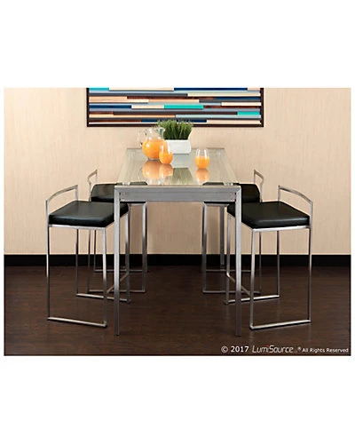 - Design details: Made of tempered glass, metal, polyurethane leather, foam; includes four Fuji Counter Stools and one Fuji Counter Table