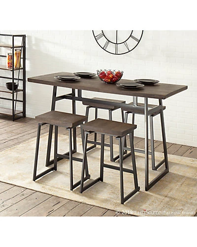 - Design details: Made of metal, wood; geometric metal frame with a rustic wood top