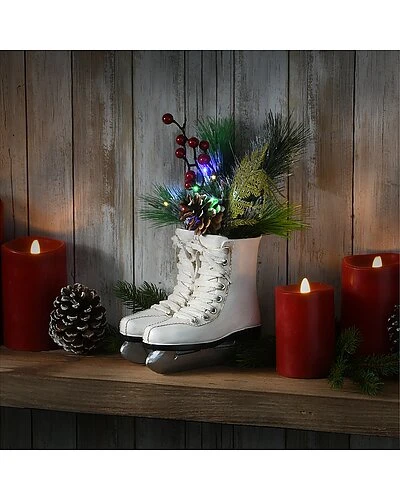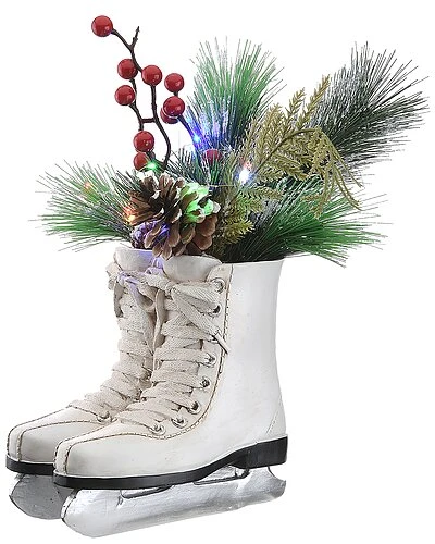 Resin 9in Multicolored Christmas Bucket Bottlebrush Figurine Home