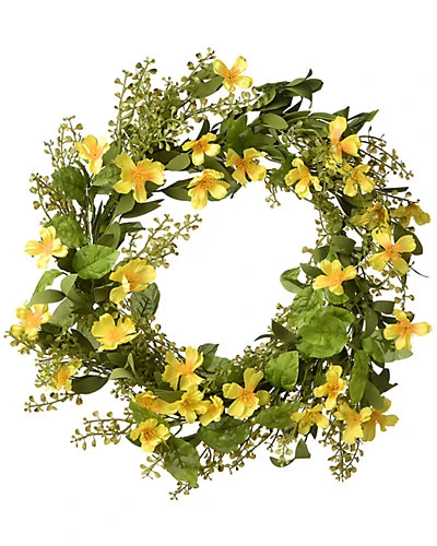 - Design details: This wreath features bright yellow mini cosmos flower blooms that are mixed with assorted complimenting leafy green stems. Welcome the spring and summer season with this bright and attractive decoration. Hang this wreath on doors, walls and windows in indoor or covered outdoor locations.