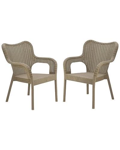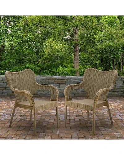 - These indoor/outdoor chairs are constructed of high strength injection molded polypropylene material that is durable, weather-resistant and long lasting. They are designed with an appealing wicker weave texture in a gray color, each with armrests for added comfort. Chairs are strong yet lightweight for easy transport and stackable for convenient storage. Material will not unravel, fray or fade. No assembly required..Set of two chairs.Chair dimensions: 26″L x 27″W x 35″H.High strength polypropylene construction.Durable and long-lasting, will not fray or fade.Gray, wicker weave texture