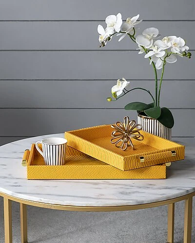 - Design details: set of two. exterior made of high quality faux leather material. nesting trays.