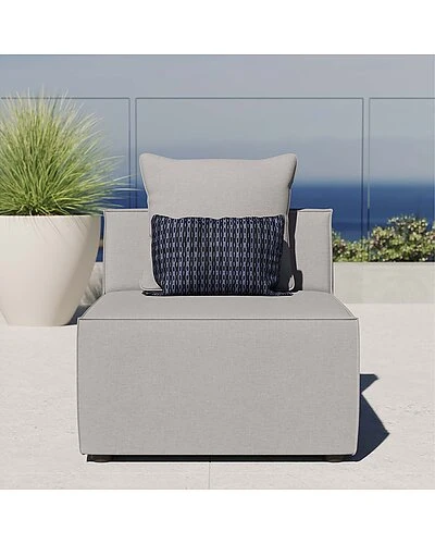 - Bring relaxing comfort and modern style to your outdoor living space with the Outdoor Patio Saybrook Upholstered Sectional Sofa Armless Chair. Creating a custom seating area on your porch, deck, poolside, or patio, this all-weather patio chair features a casual design accented by French piping details. This outdoor sectional sofa piece is complete with water and UV-resistant fabric upholstery, dense foam padding, and a sturdy aluminum frame with non-marking foot caps. Enjoy good weather and al fresco entertaining with the Saybrook Outdoor Patio Sectional Sofa Collection. Armless Chair Weight Capacity: 300 lbs.
