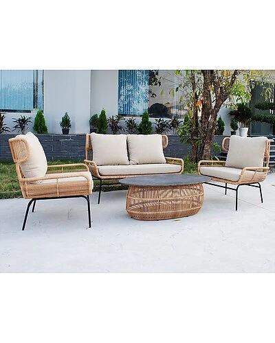 - Get trendy with the west coast inspired Pinecrest seating set. Pinecrest has a light airy feel while offering sturdy aluminum frames with hand woven synthetic wicker to remind us of bamboo. This set is sure to grab attention from all around. The oval coffee table top is made of a mix of poly resin and cement for durability and a sleek look