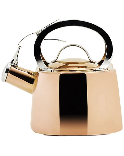 - Youll want to keep this distinctive kettle displayed on your cooktop, as its sure to draw compliments from all who enter your kitchen. Its shape is anything but ordinary and its brightly polished DuraCopper finish dazzles the eye. But the Io kettle isnt just for show. Heavy duty materials and top notch construction will stand the test of time, while the efficient encapsulated base reduces boil time and can be used ALL stovetops, induction included. A pleasant whistle alerts you when your waters reached a boil, and the trigger spout makes for convenient pouring. Add a beautiful, durable, easy-to-care-for DuraCopper kettle to your kitchen today!
