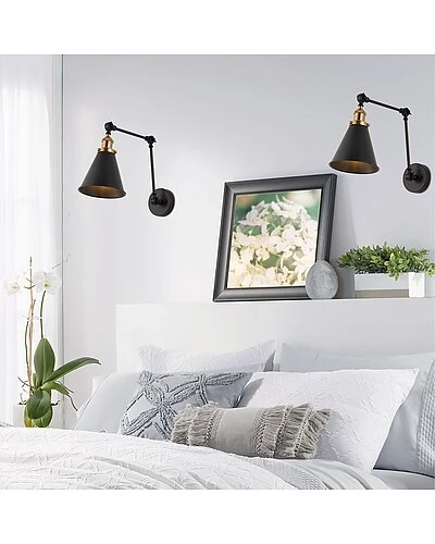 - Design details: With an adjustable arm and easily focused metal shade, this set of 2 sconces is the perfect solution for bedside lighting – no nightstands required! For added luxury, have your electrician install a switch below each light so you don’t have to get out of bed to turn it on or off. When space is limited, they also make for excellent focused lighting, such as over bulky wall art, or above a vanity mirror. With LED compatibility, you’ll rarely have to reach up to change the bulb.