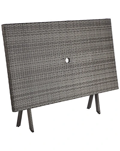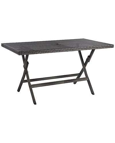 - The Akita Table perfectly blends the functionality of a folding table with the high style needed for chic outdoor dining. Styled in decor-smart grey, Akitas texture-rich surface features a cut-out in the center for umbrellas, allowing you stay protected from the suns harsh rays.