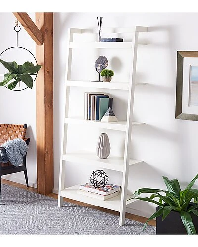 - Design details: excellent as a bakers rack or open showcase, this beauregard leaning etagere gives any interior a touch of industrial farmhouse charm. beauregards five white shelves are paired with a matching streamlined frame that rests calmly against the wall for a relaxed, casual vibe.
