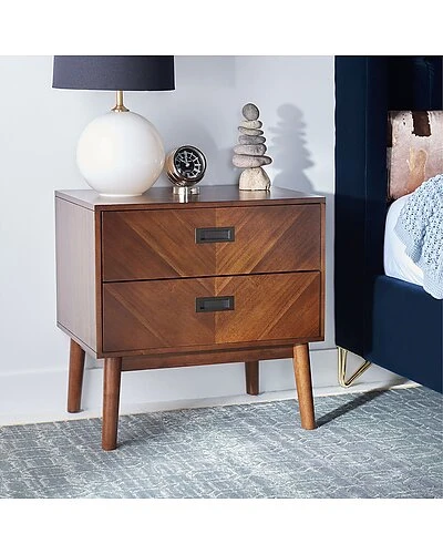 - This Donald Nightstand is a sophisticated fusion of Mid-Century chic and contemporary class. Donalds herringbone-inspired pattern and dark walnut finish overflow with charisma, while two drawers provide ample storage beside a bed or sofa.
