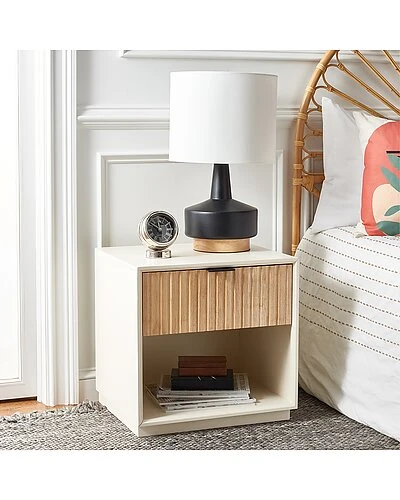 - With an artistic mixed media edge that cant be beat, this Grayden Nightstand is simply sensational. Graydens natural wood drawer features intricate undulated carvings that ripple with visual intrigue, and its clean white frame and lower shelf make it effortlessly modern.