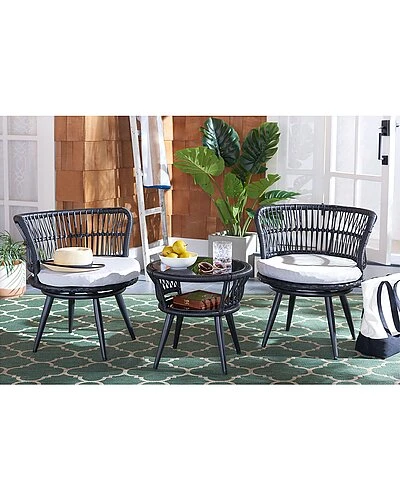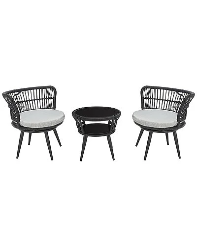 - Create an elegant and comfortable space to relax outdoors with the Kyomi 3piece lounge set. Including two accent chairs and a bistro table, the lounge set offers a convenient spot to dine, lounge, and enjoy conversations in the fresh air. Its light and airy steel frame is elevated with woven rope to lend breezy charm and dimension to your outdoor space. Completed with a barrel back and a boxy seat, the lounge set offers easy comfort. It features tapered legs to attain a modern and relaxed edge. From a large patio to small decks and balconies, the versatile lounge set complements any outdoor space.