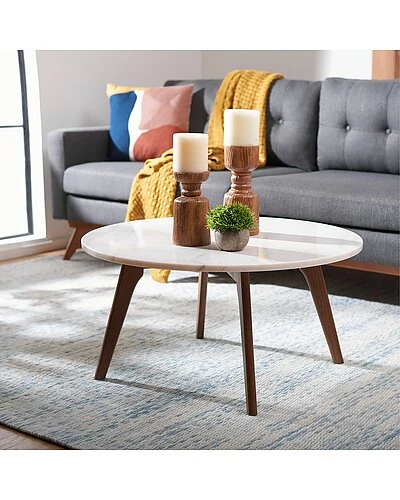 - Design details: mid-century charm meets modern celebrity chic in this stunning syrio coffee table. syrios clean-lined walnut-finished frame provides a beautiful artistic counterpoint to the organic striations of its white marble top, enchanting any living space with its mixed media mastery.