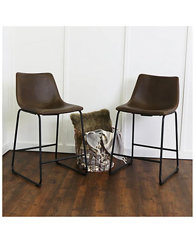 - Design details: Give your kitchen an update with our faux leather barstools for your counter space, as they are both comfortable and stylish. This set includes two barstools made with synthetic leather upholstery and powder coated steel legs for a sturdy piece you can rely on. Have a snack at your kitchen counter while talking with a friend, in the comfort of these barstools, which feature softened angular lines for an industrial style. When in need of extra seating, take the stool into your living space while enjoying a conversation with friends, as it is light to carry. These barstools will be a quick and easy update, that’ll instantly transform your kitchen space for a more modern and trendy look.